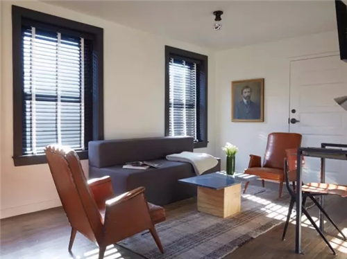 酒店所在的位置對于悉尼人來說是充滿回憶的。雖然處在城市的邊緣,但它曾經是CUB的舊址——這家啤酒廠開了170年,在悉尼人的印象里,他們總能在這里喝到好喝又便宜的啤酒。后來經營者撤出,它逐漸變成了一座令人遺忘的軀殼。新加坡商人Loh Lik Peng不愿看見釀酒廠和鄰棟的舊酒吧變成如此可惜的一角,決定將兩棟建筑重新翻修整頓,4年之后便誕生了時髦又新穎的 Old Clare Hotel。負責改建的是當地建筑設計公司Tonkin Zulaikha Greer,他們保留了老建筑的低調,并將分開兩個建筑的巷子改造成了酒店的大堂,為曾經充滿維多利亞時期風情的方形建筑賦予新的獨特風格。酒店擁有62間房間和套房,設計以工業風為主,房檐、老木鑲板以及原始裸露的磚塊都加強了這種印象。客房里,中性色彩的毛絨真皮和胡桃木家具修飾并沒有喧賓奪主,反而讓室內的風格得到更完整的體現。