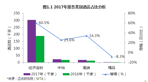 新聞來源:宏輝智通 發布日期:2017-11-17 瀏覽次數:3270截至2017年9月,我國各類酒店合計已接近40萬家。如此龐大的市場內,中高端酒店仍存在結構性不足問題,其市場份額尚不足20%。