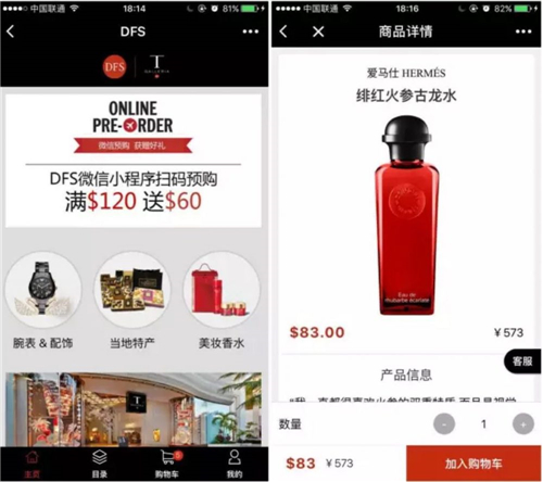 除了上文提到的“外交部 12308”小程序能為用戶在境外的人身安全服務之外,在旅游攻略查詢方面,有””窮游智能攻略”小程序;在消費購物方面,有“DFS 購物”小程序,幫助用戶在免稅店一鍵購物。