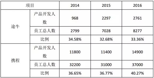 相比之下,攜程近3年每年的花費在產品研發上的費用都是最高的,能維持在45%左右。