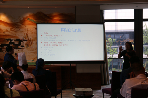 “酒店還考慮到了語言的問題,由于我們接待貴賓的母語是阿拉伯語,所以酒店員工都學(xué)習(xí)了簡單阿拉伯語,并在菜單、電視接單等物料上都額外再加上阿拉伯語。阿拉伯文化和習(xí)俗,包括餐飲方面,都是我們接待工作的重點,必須嚴(yán)格遵守阿拉伯的飲食文化。”酒店高管表示道。