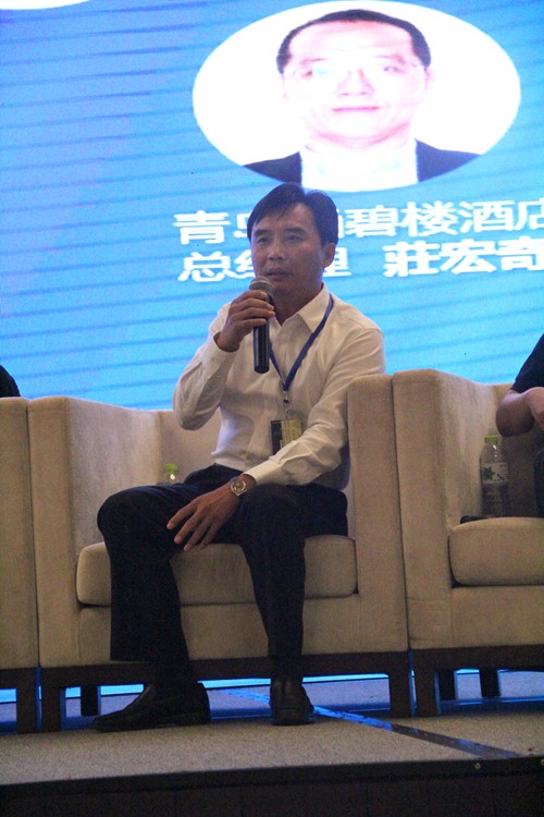 丁德杰:“酒店+”這一模式很令人深思,山東藍海酒店集團作為山東餐飲界領軍企業,也面臨著轉型的機遇與挑戰,雖然餐飲行業整體不景氣,但是藍海集團及時轉型,回過頭看到“酒店+X”,藍海集團的轉型主要是從高端餐飲市場轉向中低端市場,“以前一些酒店設立最低消費,現在這種限制取消,不僅允許自帶酒水,同時也免收服務費;像新開的白金五星自助餐廳,就餐的標準降到了50元每位”。