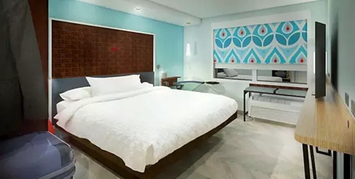 希爾頓酒店集團(tuán)宣布推出首家Tru品牌酒店時(shí),該集團(tuán)顯然是期望重點(diǎn)鎖定新興一代旅客。Tru品牌酒店僅配置兩種客房類型,每間客房均配備55英寸的電視機(jī)并設(shè)有眾多電視直播頻道,但客房內(nèi)無書桌、浴缸或櫥柜。相反,酒店重點(diǎn)打造社交空間和全天候的外帶服務(wù)市場。