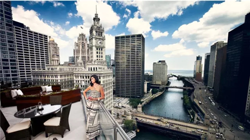 從客房內即可俯瞰芝加哥最繁華的市中心,還可以沿河看到遠處浩淼的密歇根湖。