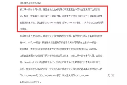 2014年10月8日,宜富集團(tuán)退出昆明香格里拉大酒店項(xiàng)目,嘉里建設(shè)發(fā)布公告,公告顯示嘉里建設(shè)全資附屬公司嘉里置業(yè)(中國)有限公司與宜富集團(tuán)簽訂買賣協(xié)議,以總額約840萬美元(約6510萬港元)收購宜富集團(tuán)持有香格里拉國際飯店(昆明)有限公司的20%股權(quán)。交易完成后,香格里拉國際飯店(昆明)有限公司將僅由嘉里置業(yè)(中國)及香格里拉中國兩家控股,其中,嘉里置業(yè)占股從35%增加至55%,成為香格里拉國際飯店(昆明)有限公司最大的股東。