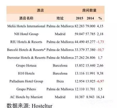 除了提高連鎖酒店的形式以及擴大客房數量以外,酒店集團的利潤收入數據變化量也同樣可以非常重要, 以下是西班牙根據收入水平排名前10的酒店集團.