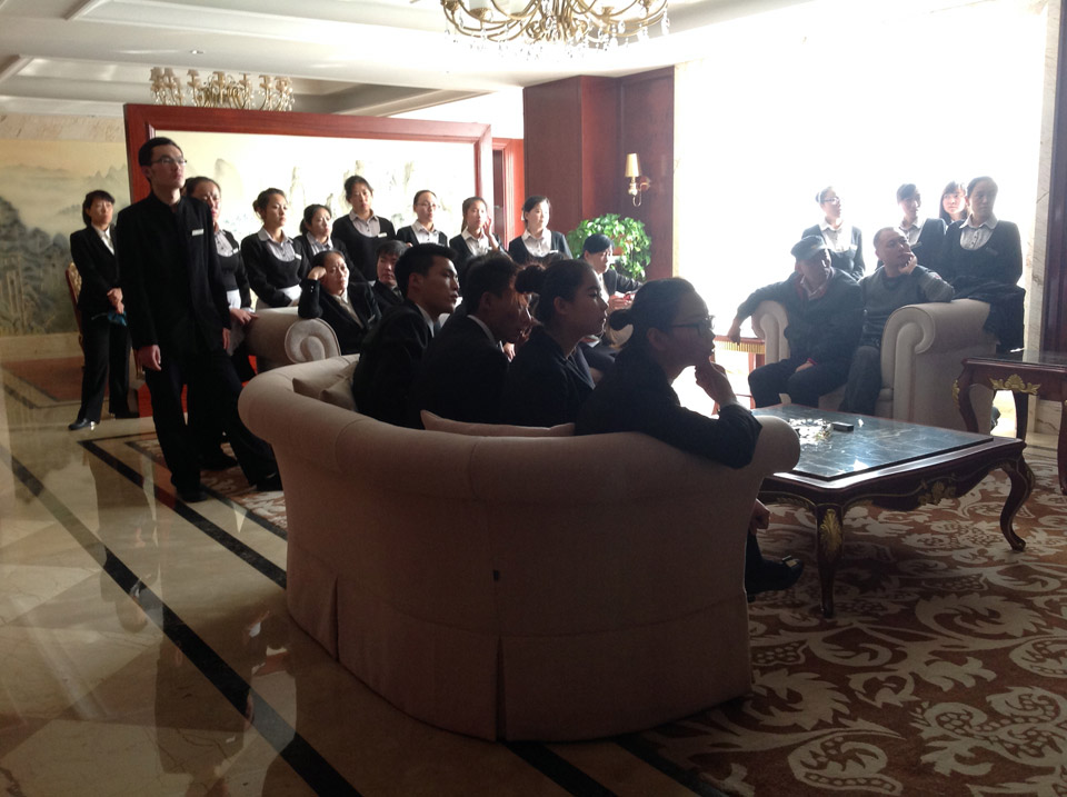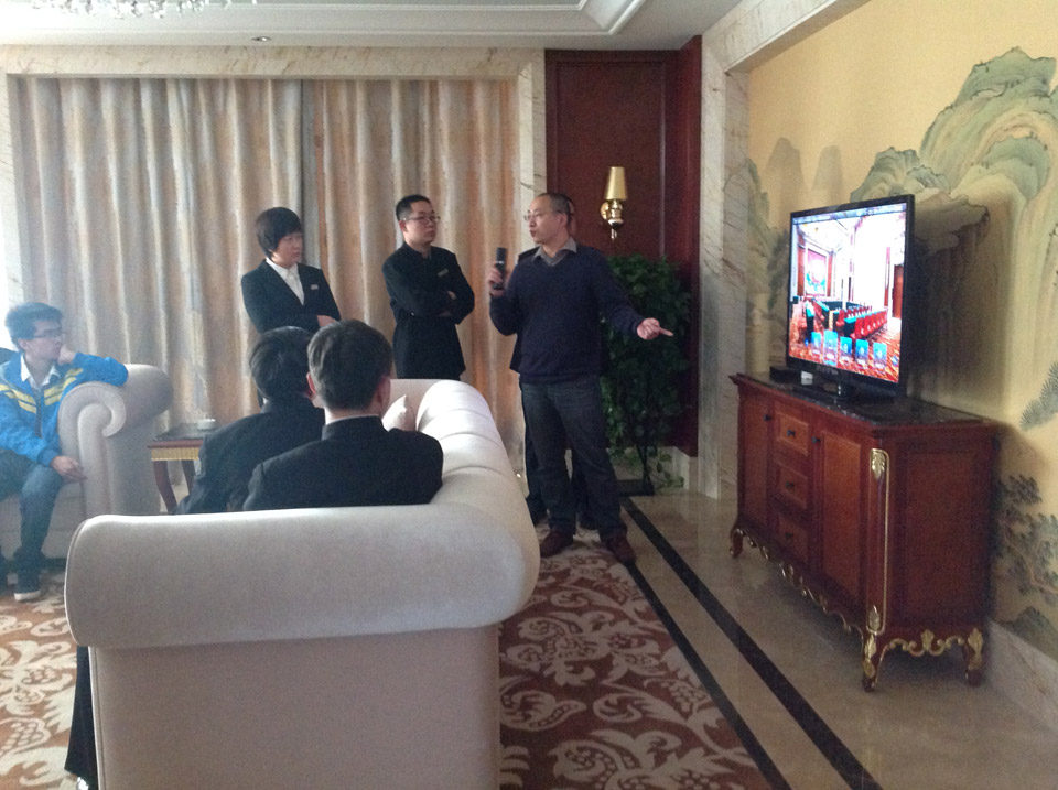 八:現場給酒店各個領導講解“輝視系統”!每個工作人員都很認真的吸收新穎的酒店電視系統知識!